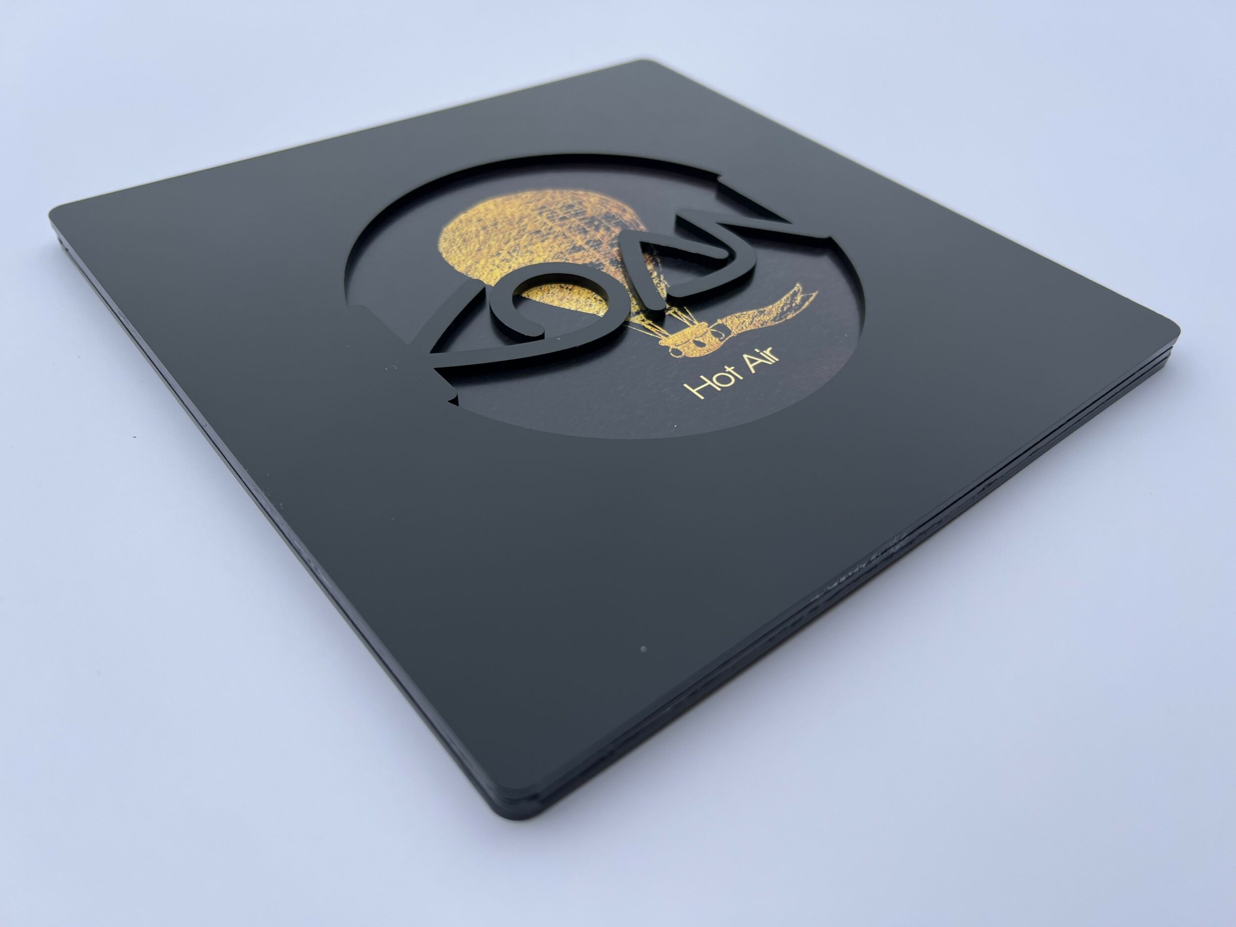 Package made from heavy, black plexiglass